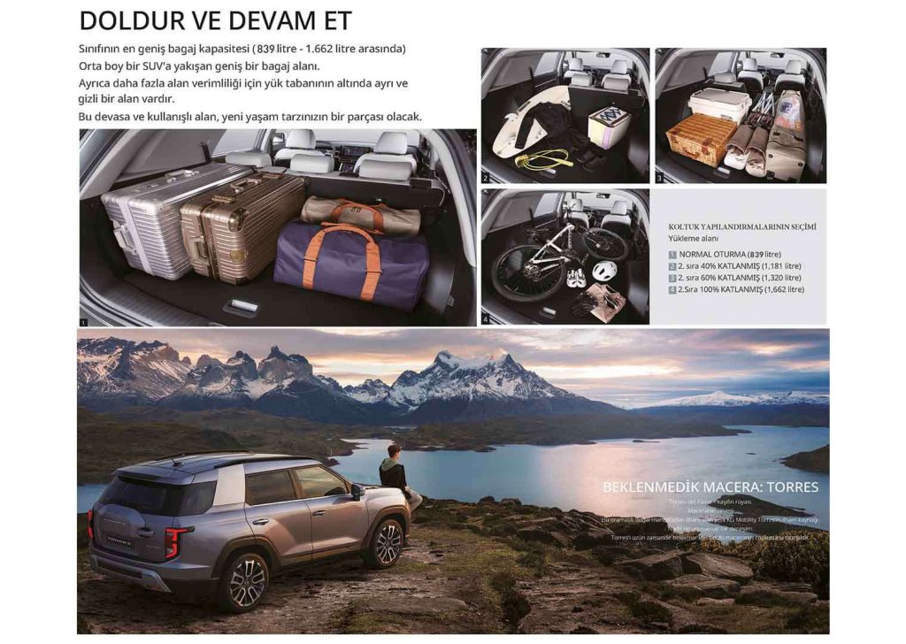 SsangYong Torres 4x4 – Her Yolda Güç ve Kontrol Zorlu yol koşulları ve macera dolu rotalar için geliştirilen Torres 4x4, dört tekerlekten çekiş sistemi sayesinde her zeminde maksimum yol tutuş sağlar.